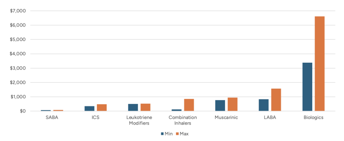 Costs (Wholeshare Acquisition Cost, i.e. list price) vary significantly by therapy type, as shown in Figure 2.[4]